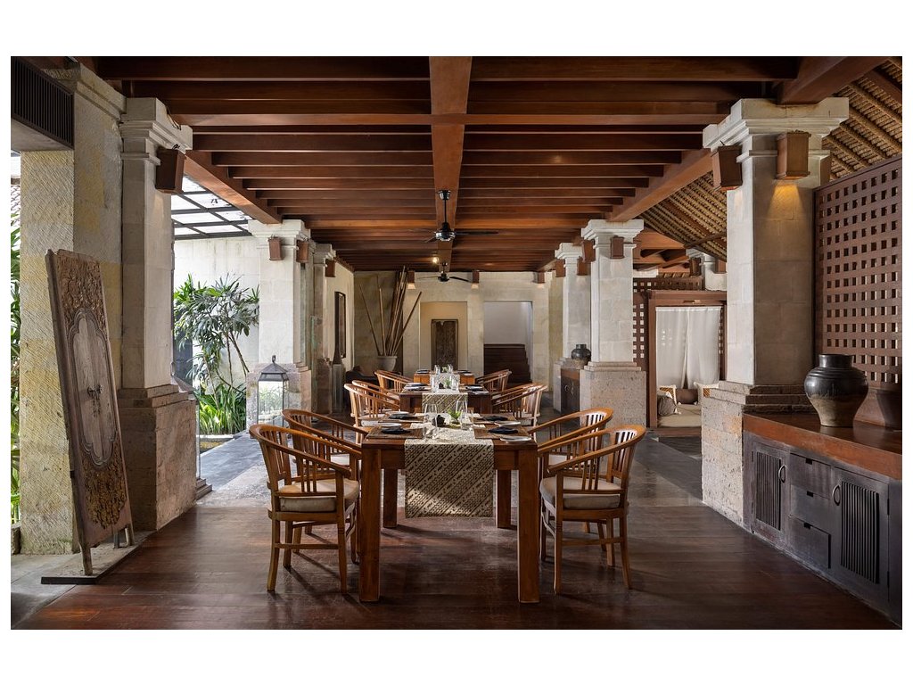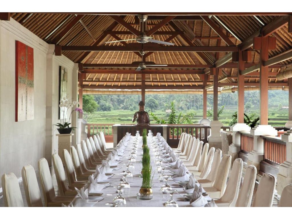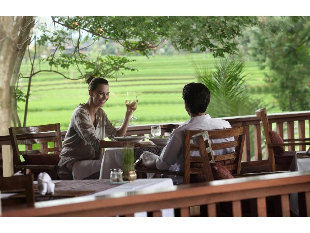 Angkul-Angkul Restaurant (celodenní stravování), Banjar Lobby Lounge (koktejly & odpolední čaj), The Paddy Coffee Shop (káva a lehká jídla). Důraz na lokální suroviny, možnost snídaně či večeře v soukromí vaší vily.