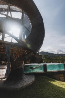 cca 95 m² | Vila s charakteristickou „kobří“ siluetou, prostorná ložnice, obývací část, terasa nad údolím. Přírodní materiály, moskytiéry, komfortní posezení. Skvělé pro východy slunce.