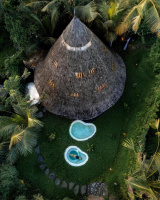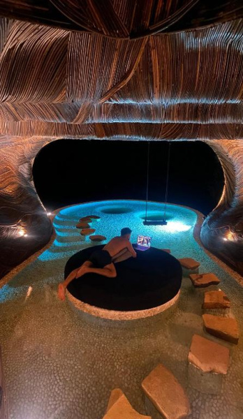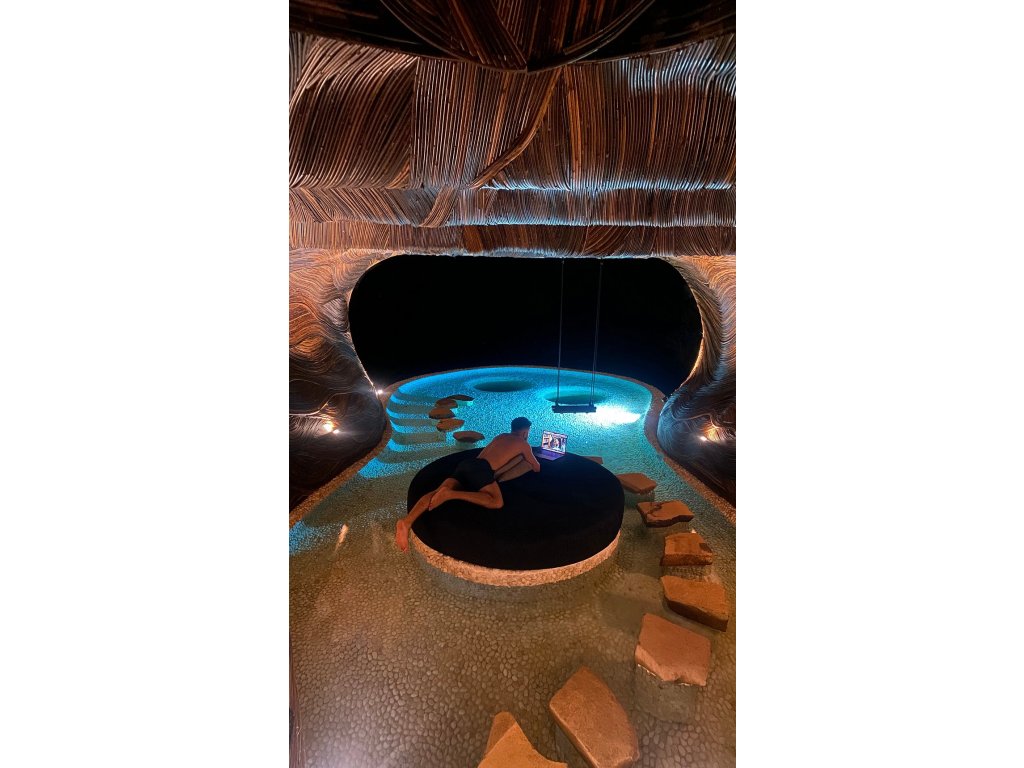 cca 90 m² | Organická architektura inspirovaná mantou; terasa s lehátky, otevřený salonek, ložnice s king bed, koupelna se sprchou a přírodními prvky. U vybraných termínů možnost in-villa dekorací a večeří.