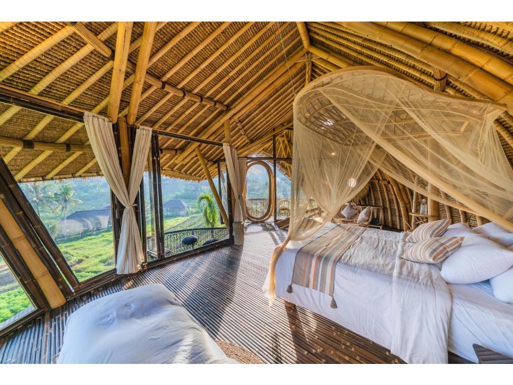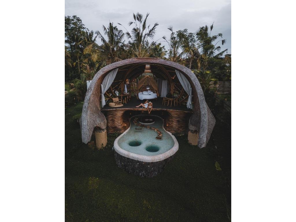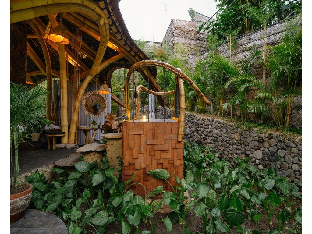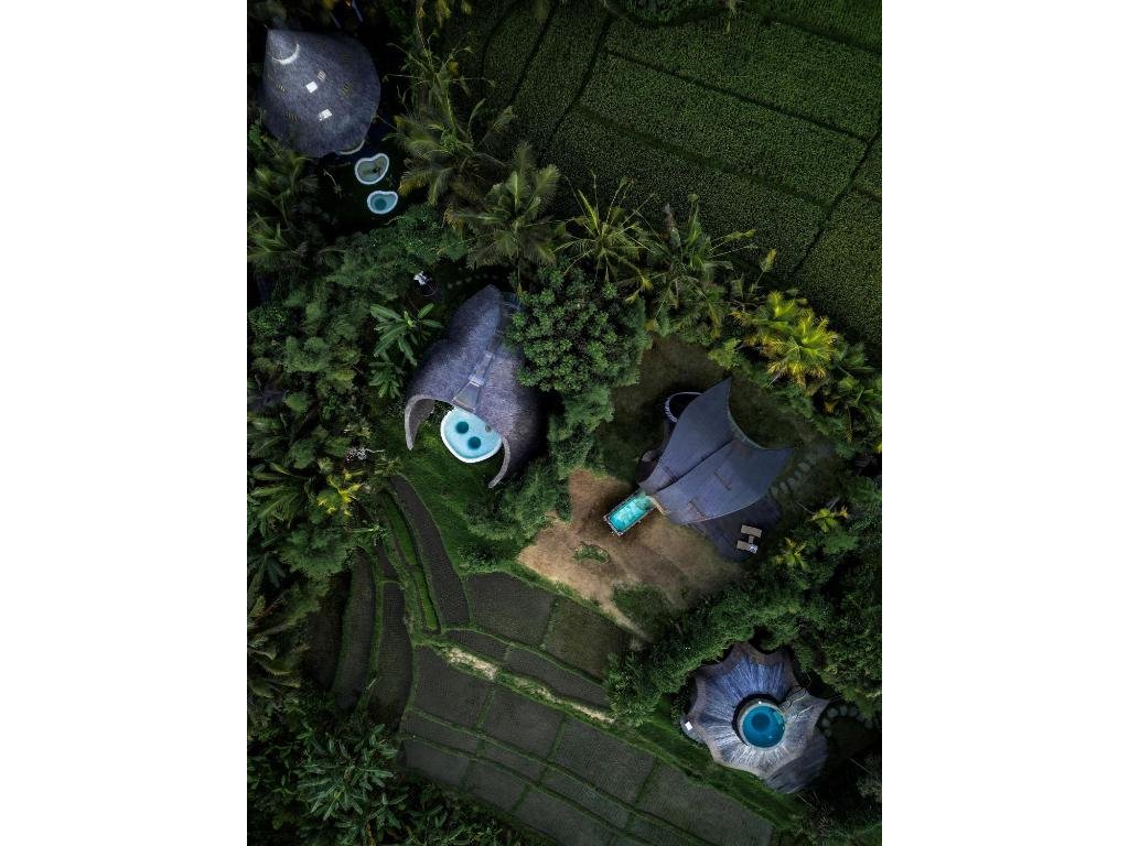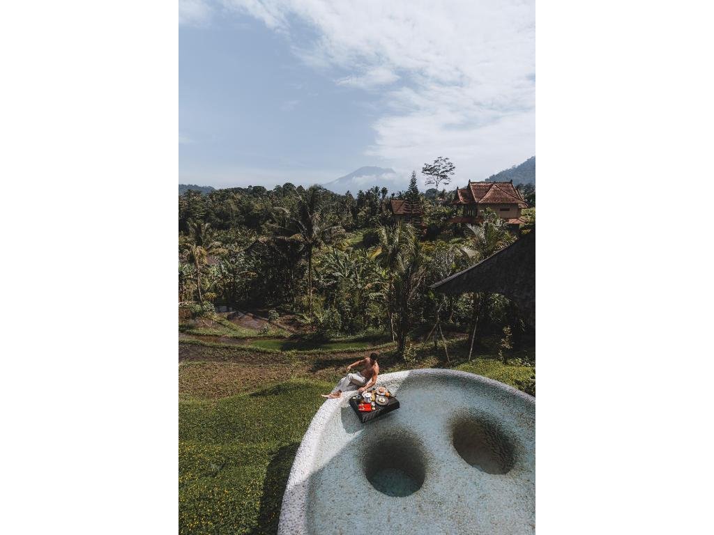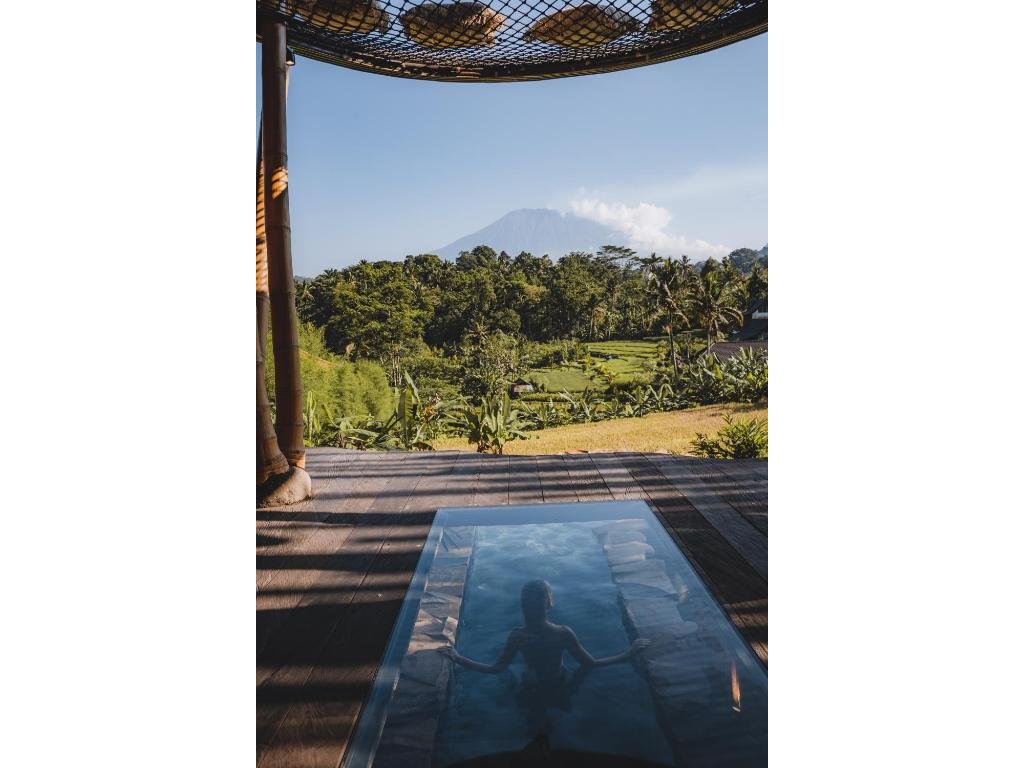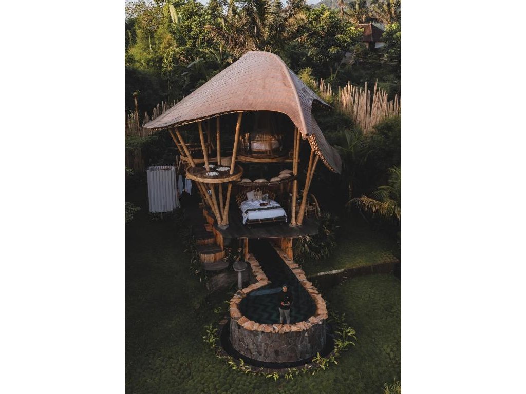 Ikonické bambusové vily ve Sidemen Valley (Východní Bali) s výhledy na rýžová pole a masiv Mt. Agung. Originální organická architektura (sovy, kobry, chobotnice aj.), soukromé plunge bazénky či vany pod širým nebem u vybraných vil a intimní „hideaway“ atmosféra. Ideální pro páry, honeymoon a milovníky přírody a fotogenických zážitků.