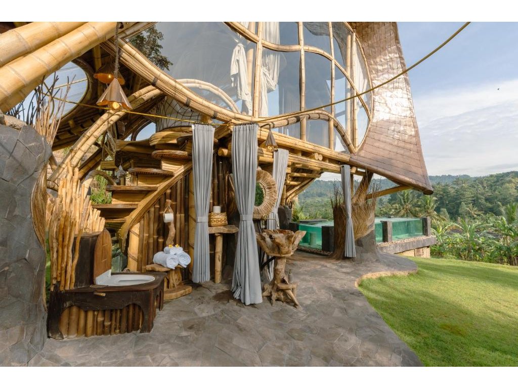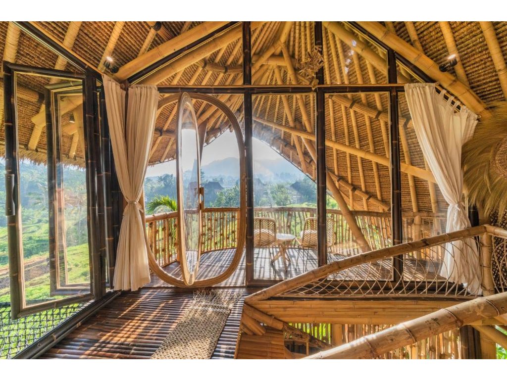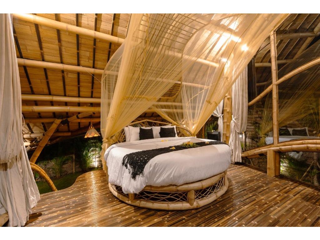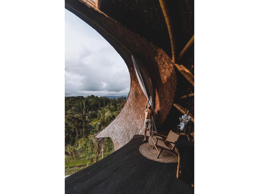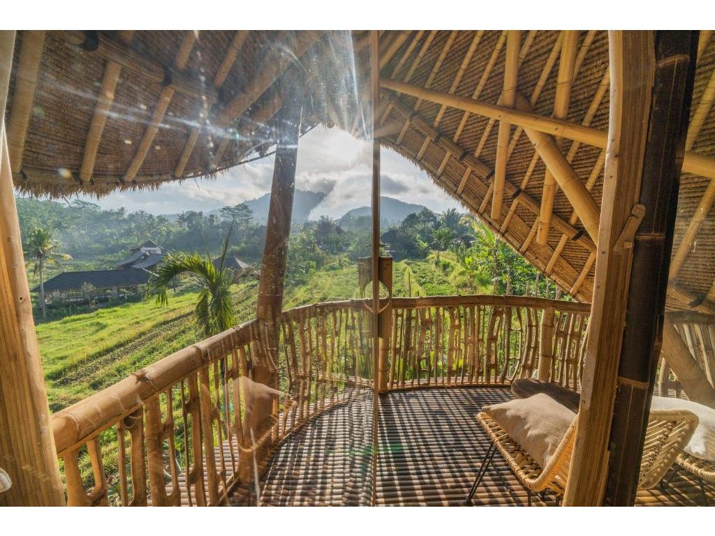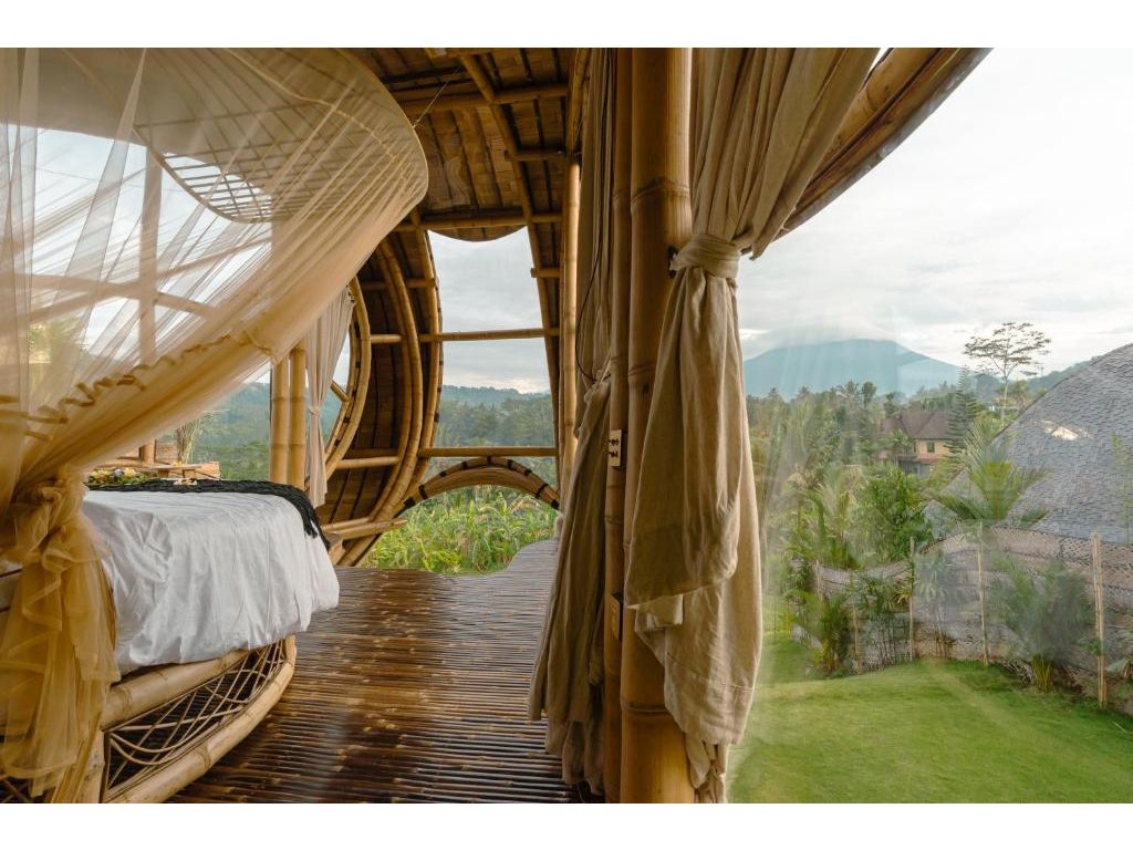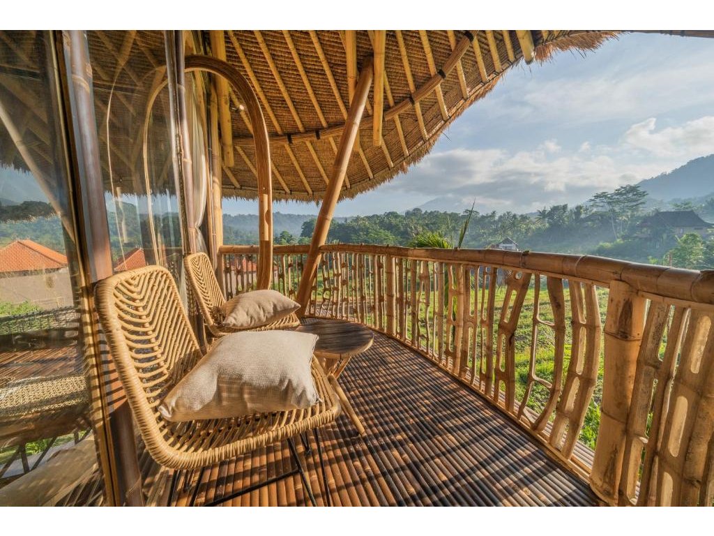 Ikonické bambusové vily ve Sidemen Valley (Východní Bali) s výhledy na rýžová pole a masiv Mt. Agung. Originální organická architektura (sovy, kobry, chobotnice aj.), soukromé plunge bazénky či vany pod širým nebem u vybraných vil a intimní „hideaway“ atmosféra. Ideální pro páry, honeymoon a milovníky přírody a fotogenických zážitků.