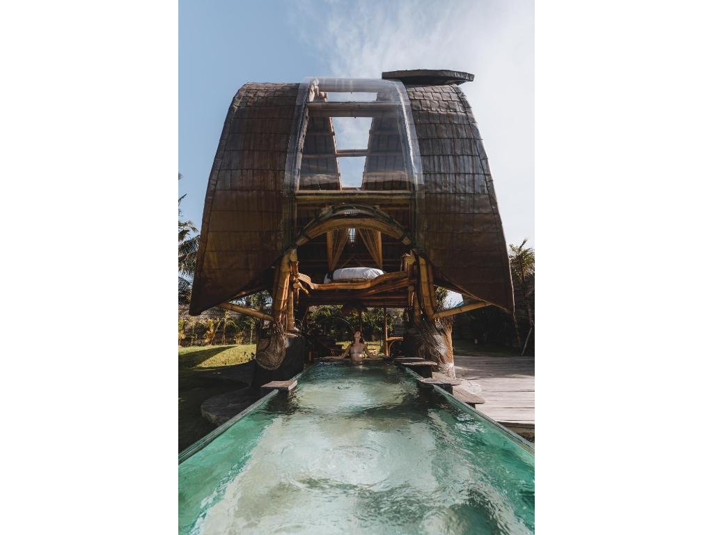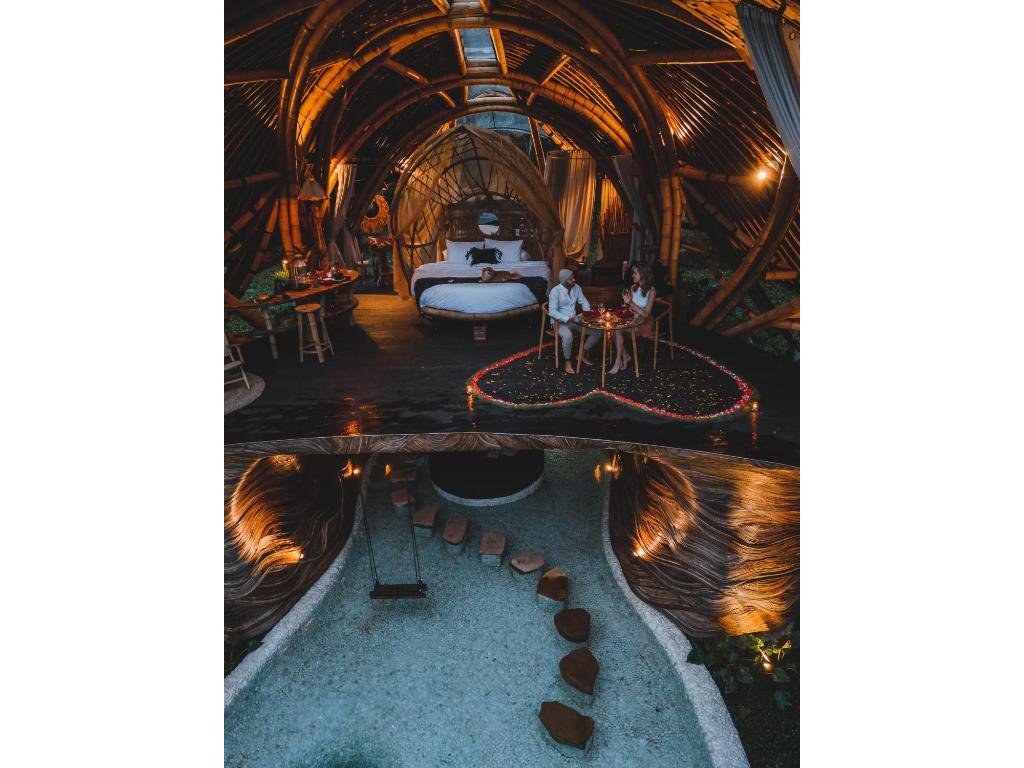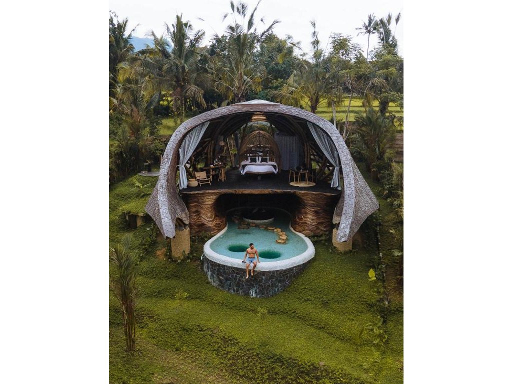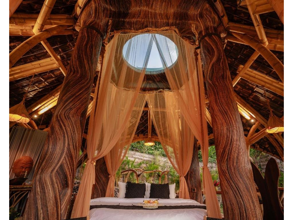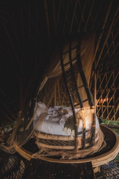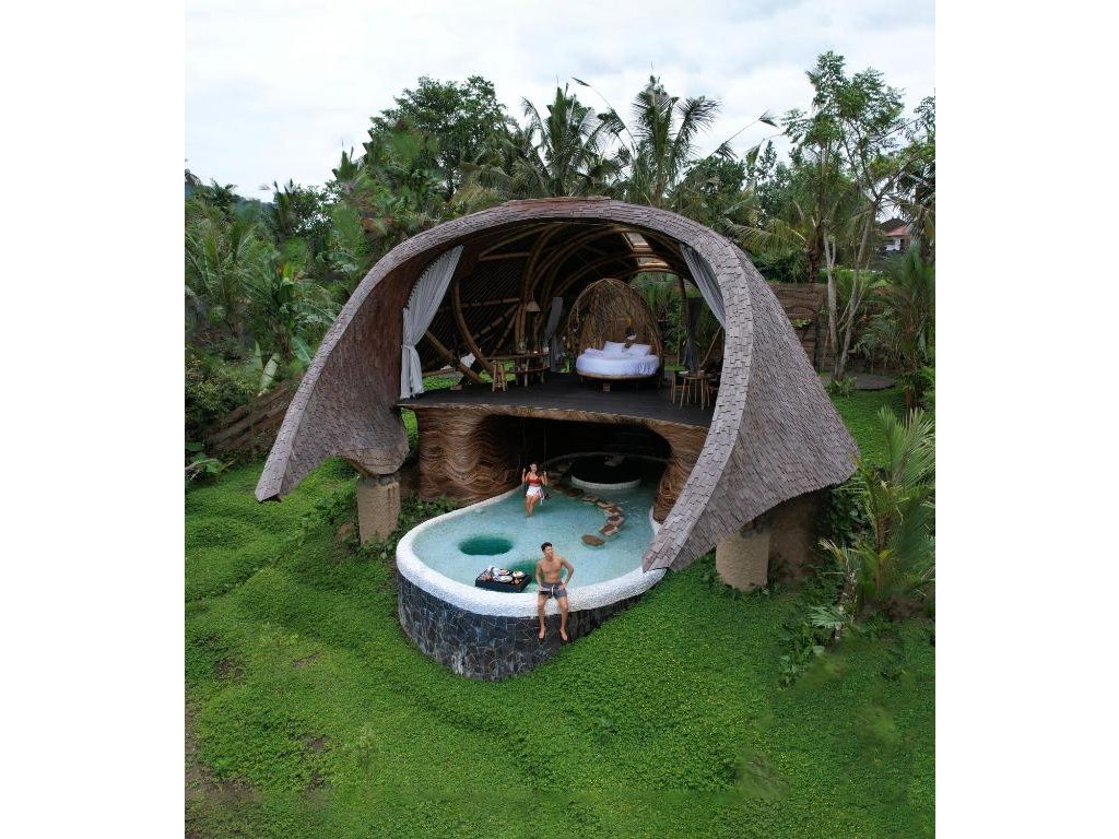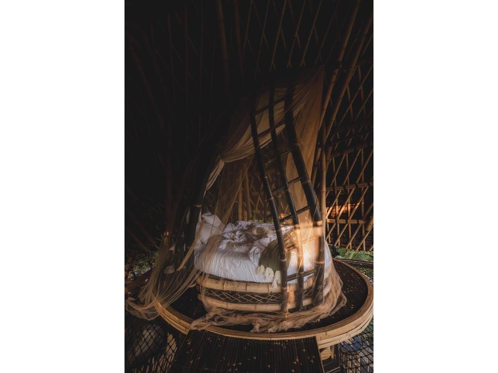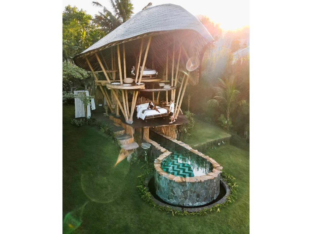 Ikonické bambusové vily ve Sidemen Valley (Východní Bali) s výhledy na rýžová pole a masiv Mt. Agung. Originální organická architektura (sovy, kobry, chobotnice aj.), soukromé plunge bazénky či vany pod širým nebem u vybraných vil a intimní „hideaway“ atmosféra. Ideální pro páry, honeymoon a milovníky přírody a fotogenických zážitků.