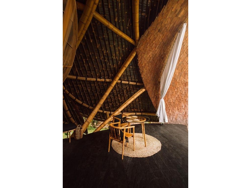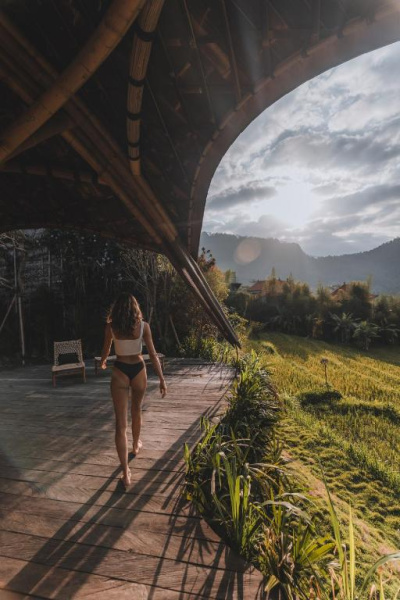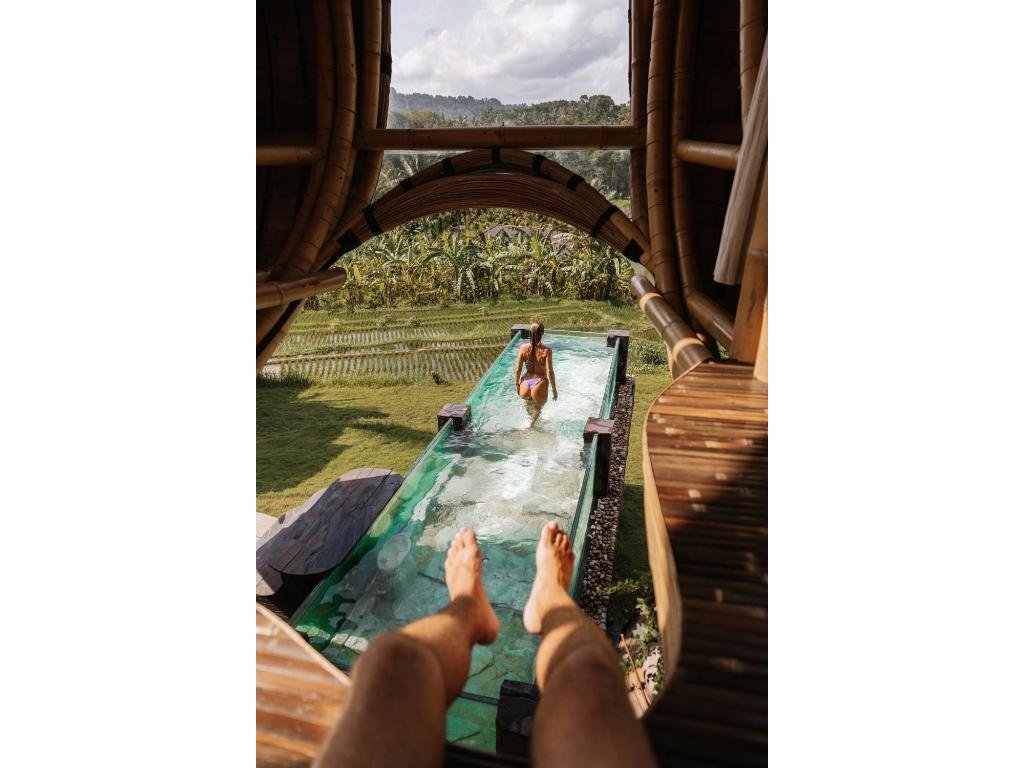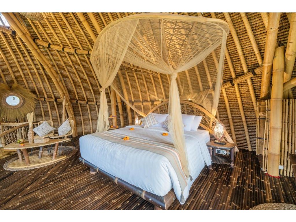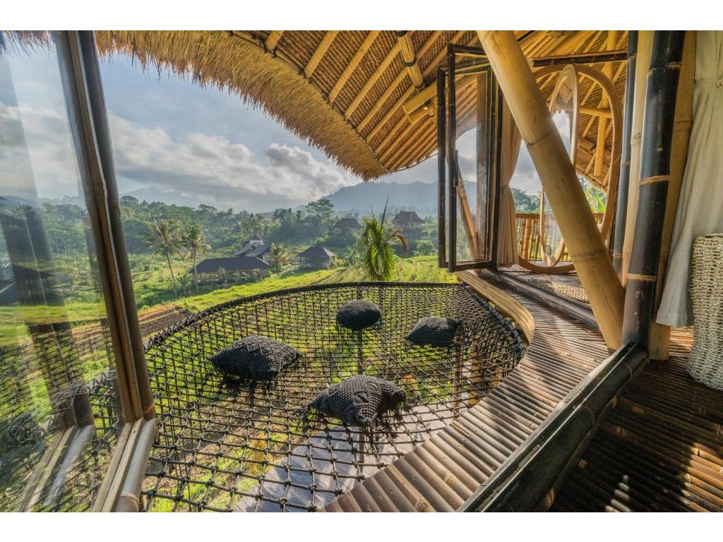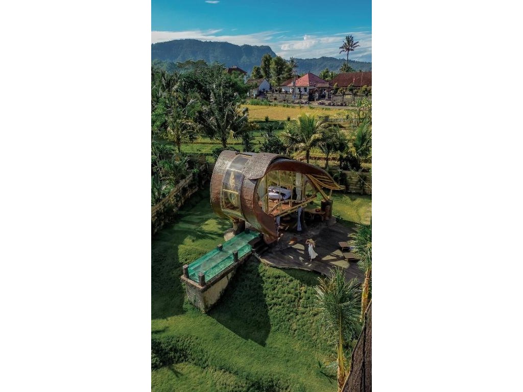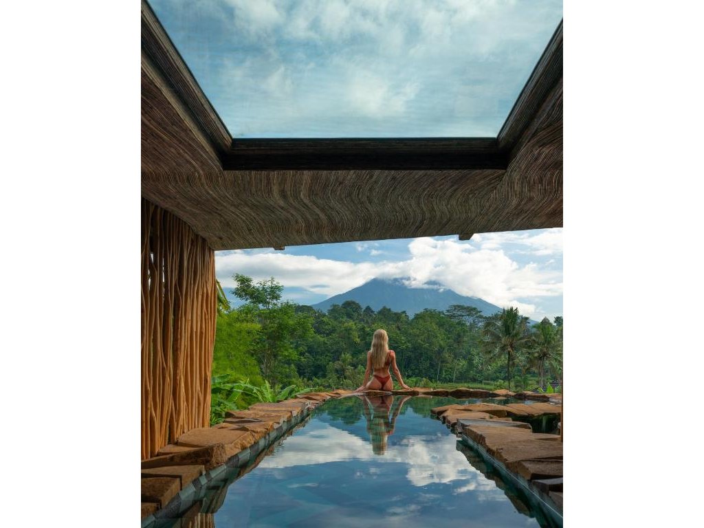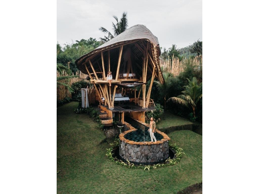 Ikonické bambusové vily ve Sidemen Valley (Východní Bali) s výhledy na rýžová pole a masiv Mt. Agung. Originální organická architektura (sovy, kobry, chobotnice aj.), soukromé plunge bazénky či vany pod širým nebem u vybraných vil a intimní „hideaway“ atmosféra. Ideální pro páry, honeymoon a milovníky přírody a fotogenických zážitků.
