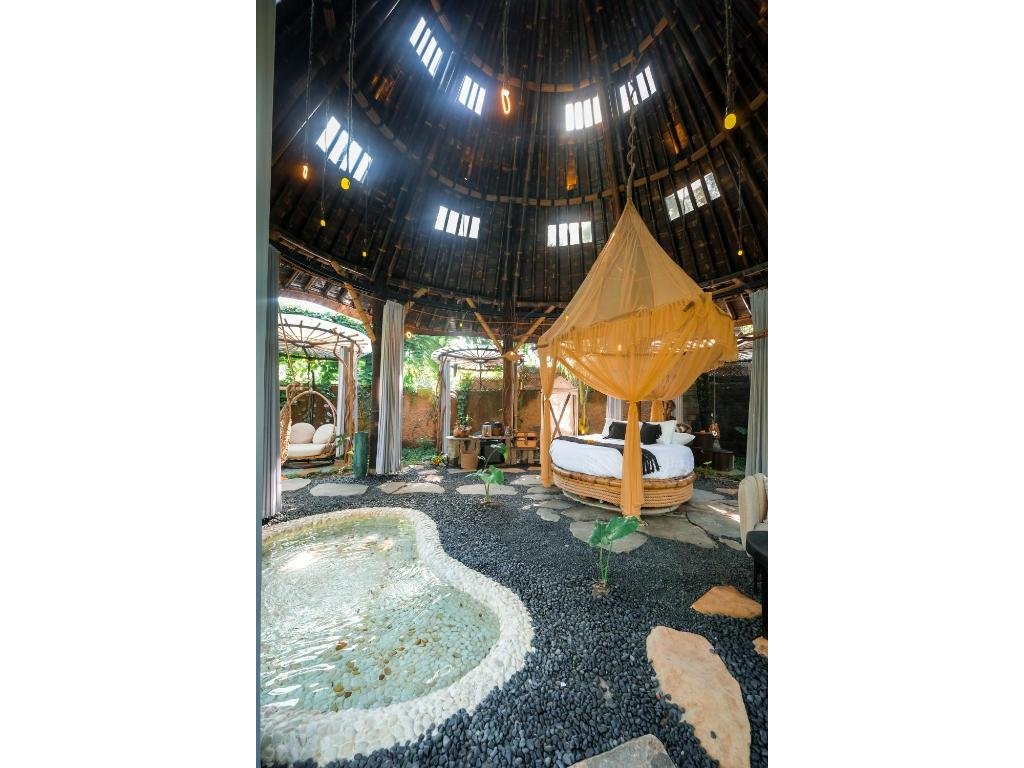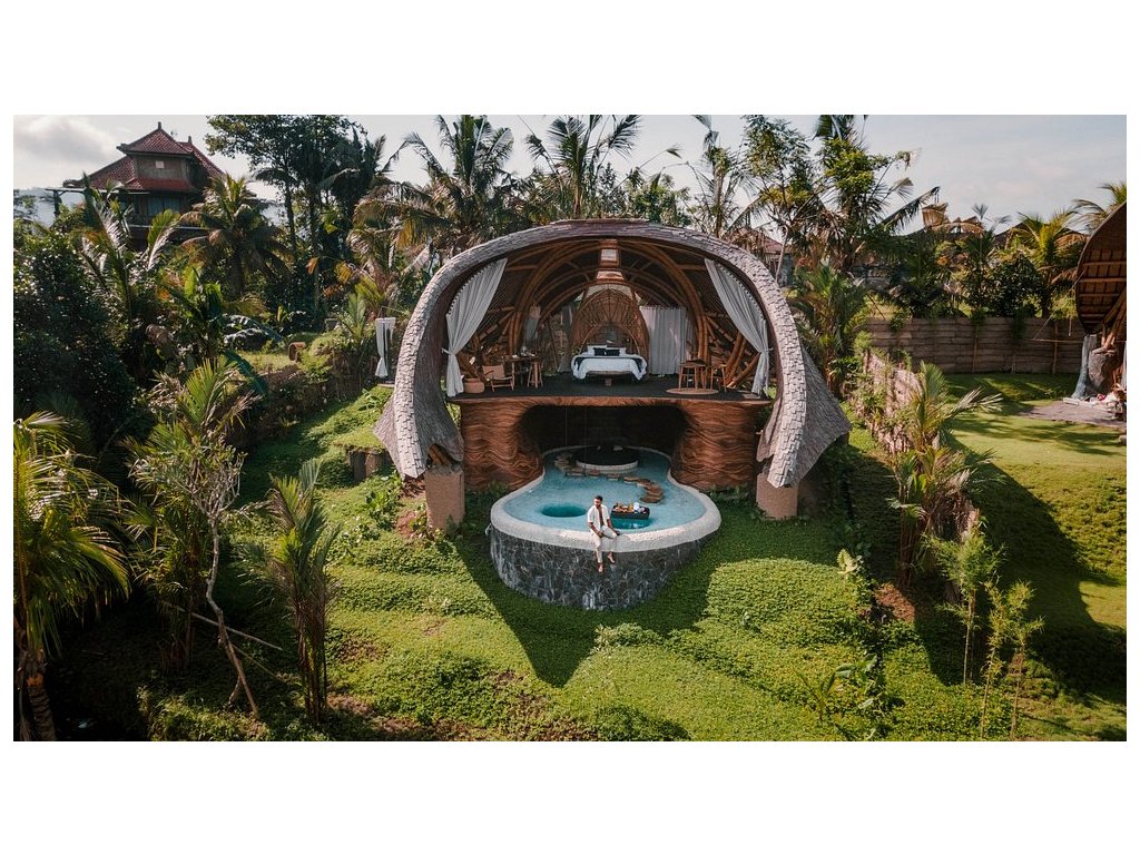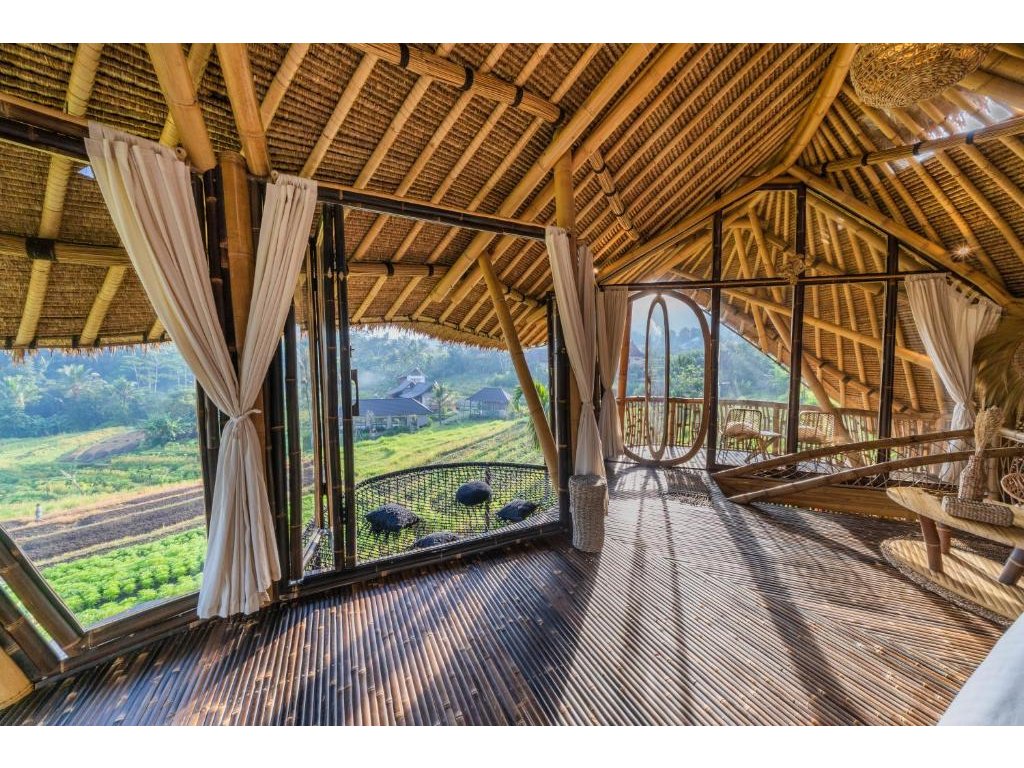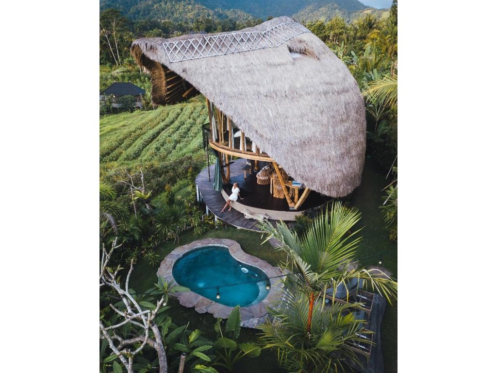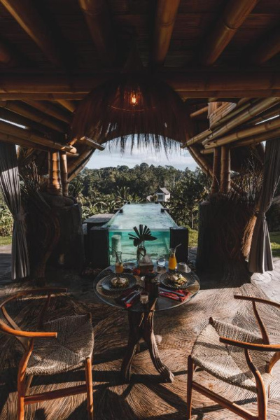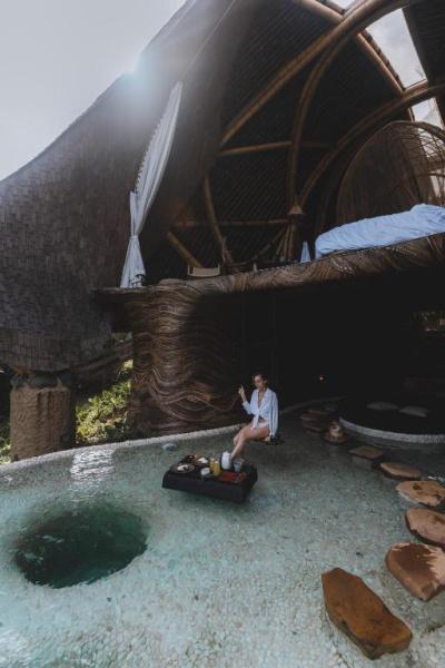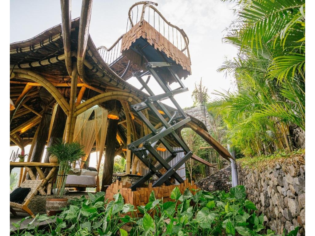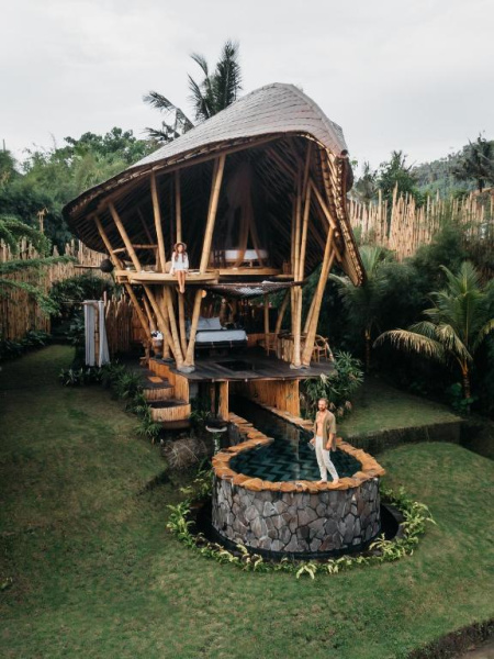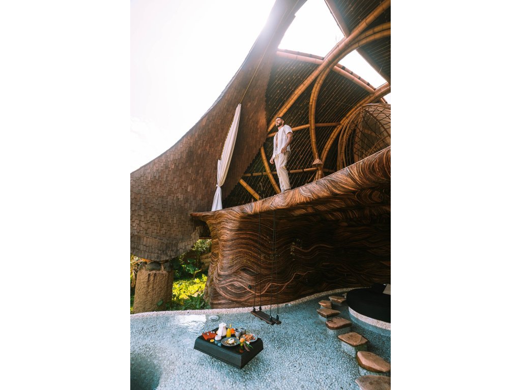 Ikonické bambusové vily ve Sidemen Valley (Východní Bali) s výhledy na rýžová pole a masiv Mt. Agung. Originální organická architektura (sovy, kobry, chobotnice aj.), soukromé plunge bazénky či vany pod širým nebem u vybraných vil a intimní „hideaway“ atmosféra. Ideální pro páry, honeymoon a milovníky přírody a fotogenických zážitků.