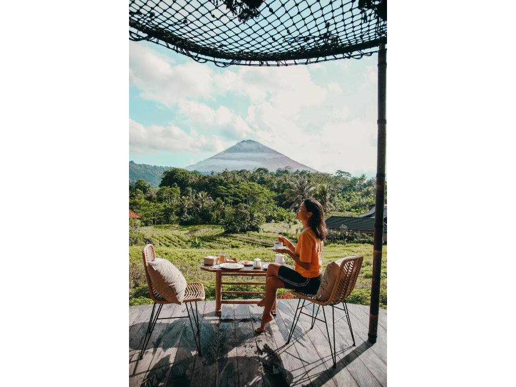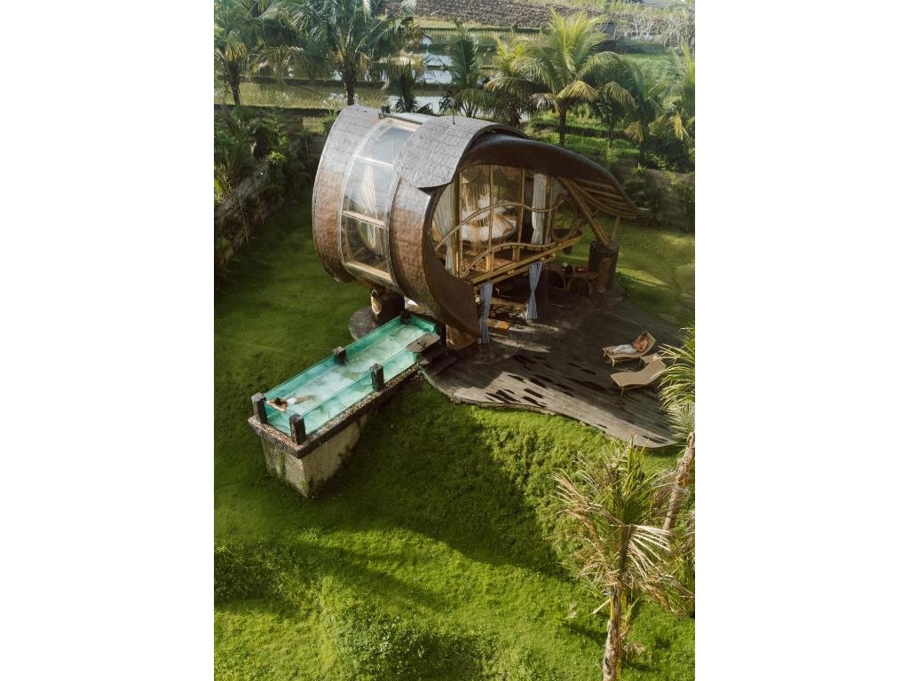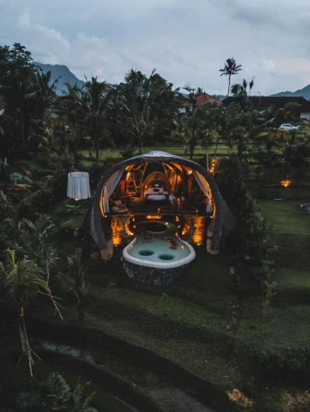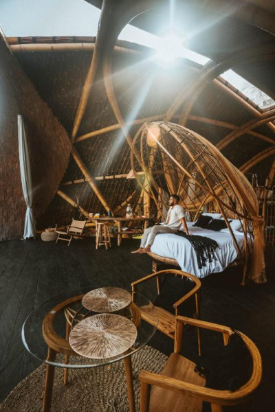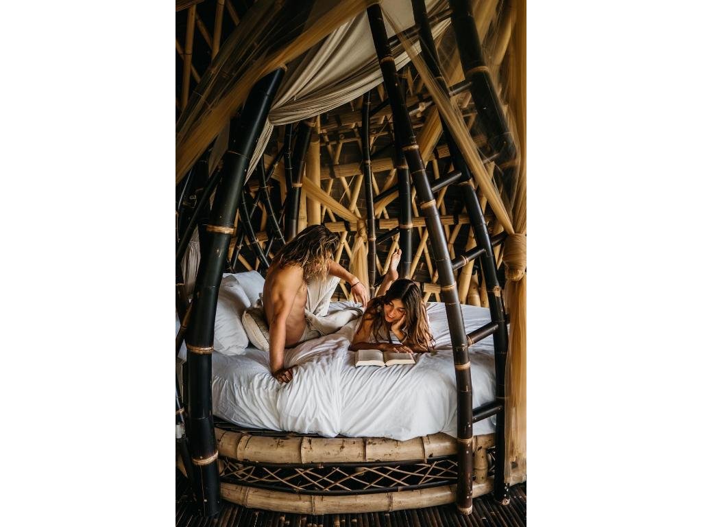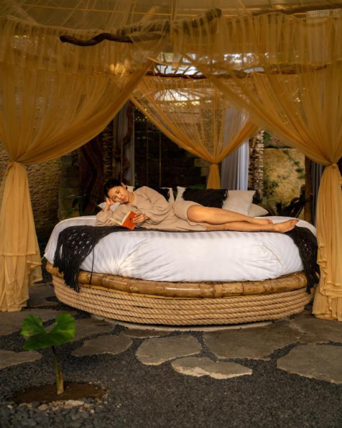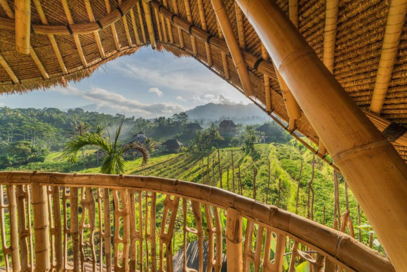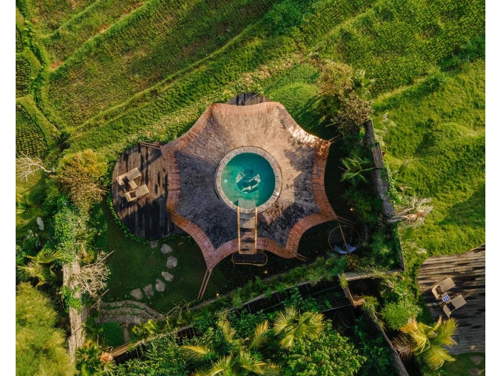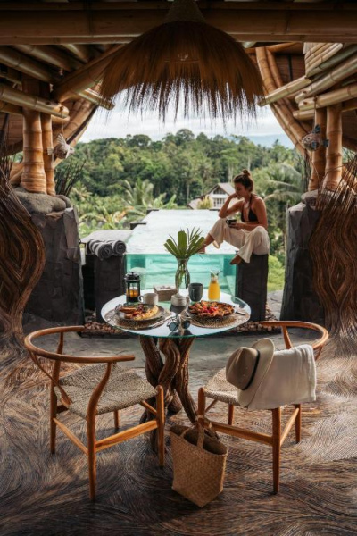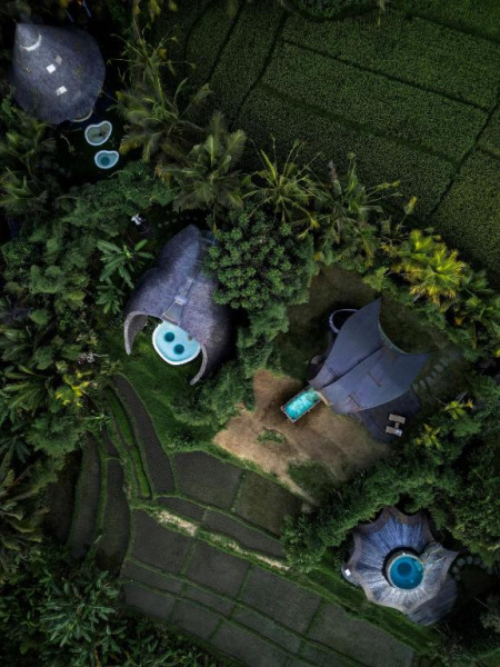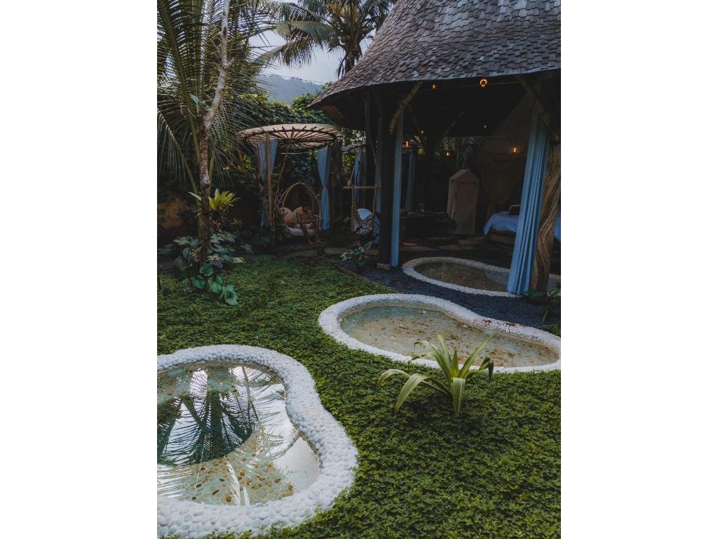 Ikonické bambusové vily ve Sidemen Valley (Východní Bali) s výhledy na rýžová pole a masiv Mt. Agung. Originální organická architektura (sovy, kobry, chobotnice aj.), soukromé plunge bazénky či vany pod širým nebem u vybraných vil a intimní „hideaway“ atmosféra. Ideální pro páry, honeymoon a milovníky přírody a fotogenických zážitků.