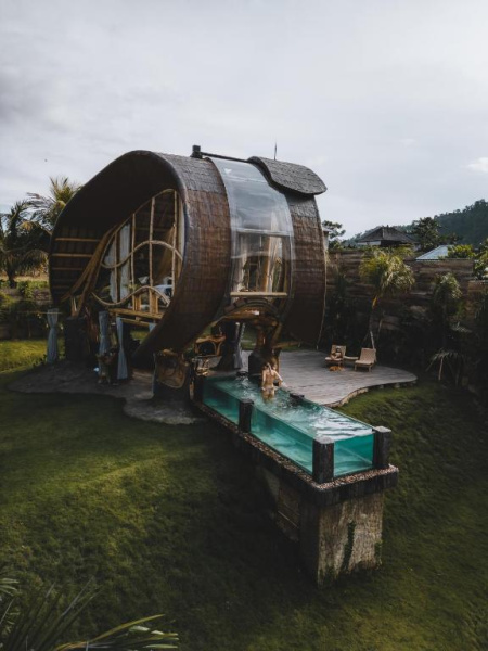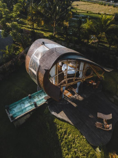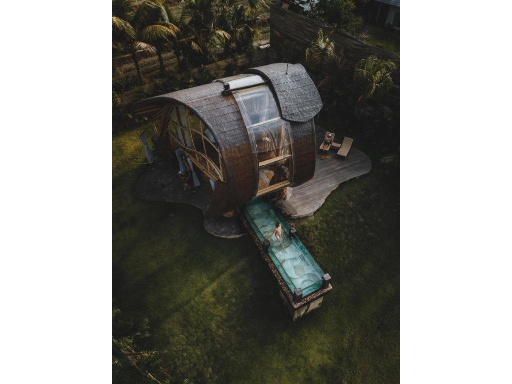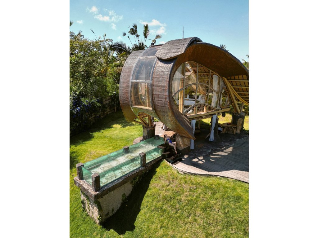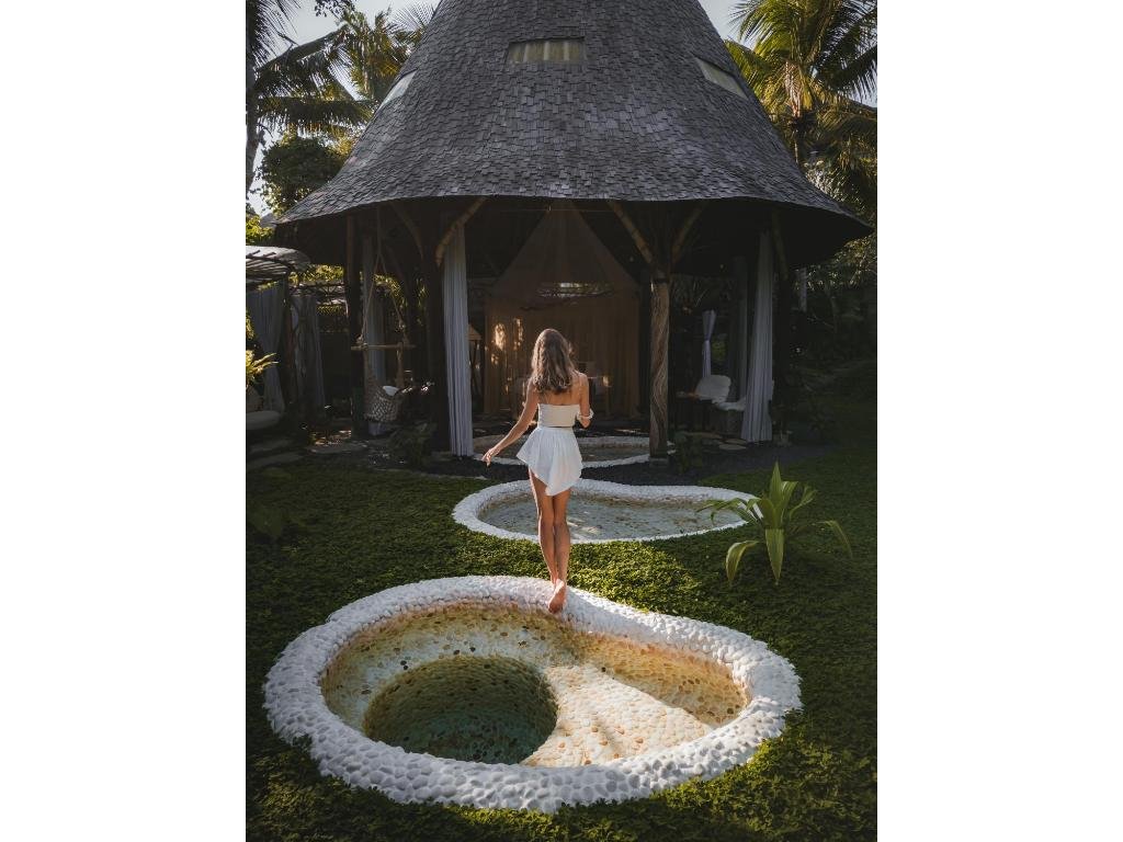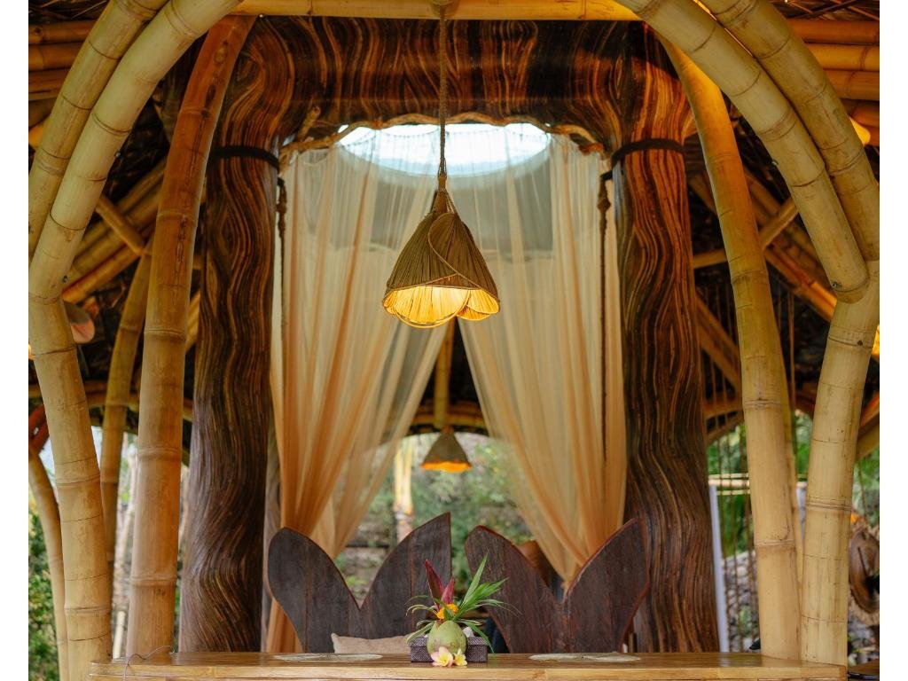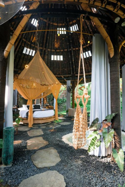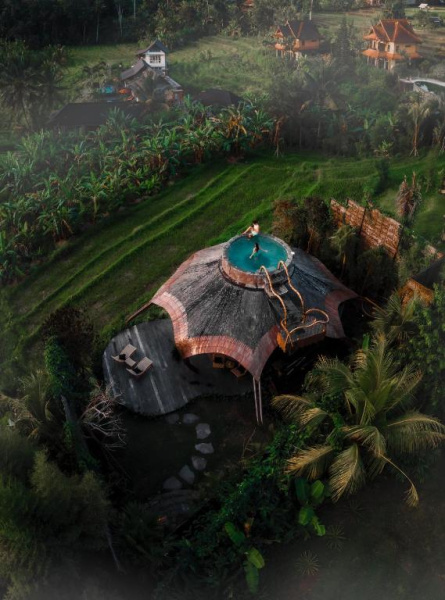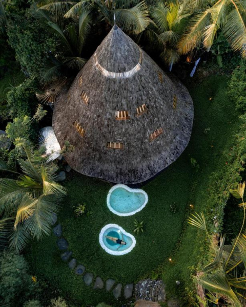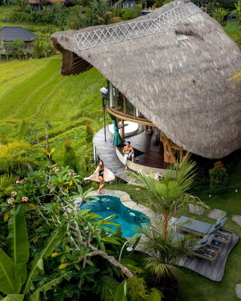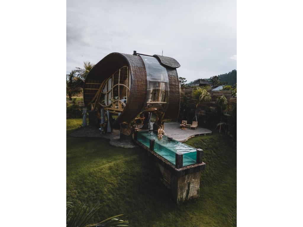 Ikonické bambusové vily ve Sidemen Valley (Východní Bali) s výhledy na rýžová pole a masiv Mt. Agung. Originální organická architektura (sovy, kobry, chobotnice aj.), soukromé plunge bazénky či vany pod širým nebem u vybraných vil a intimní „hideaway“ atmosféra. Ideální pro páry, honeymoon a milovníky přírody a fotogenických zážitků.