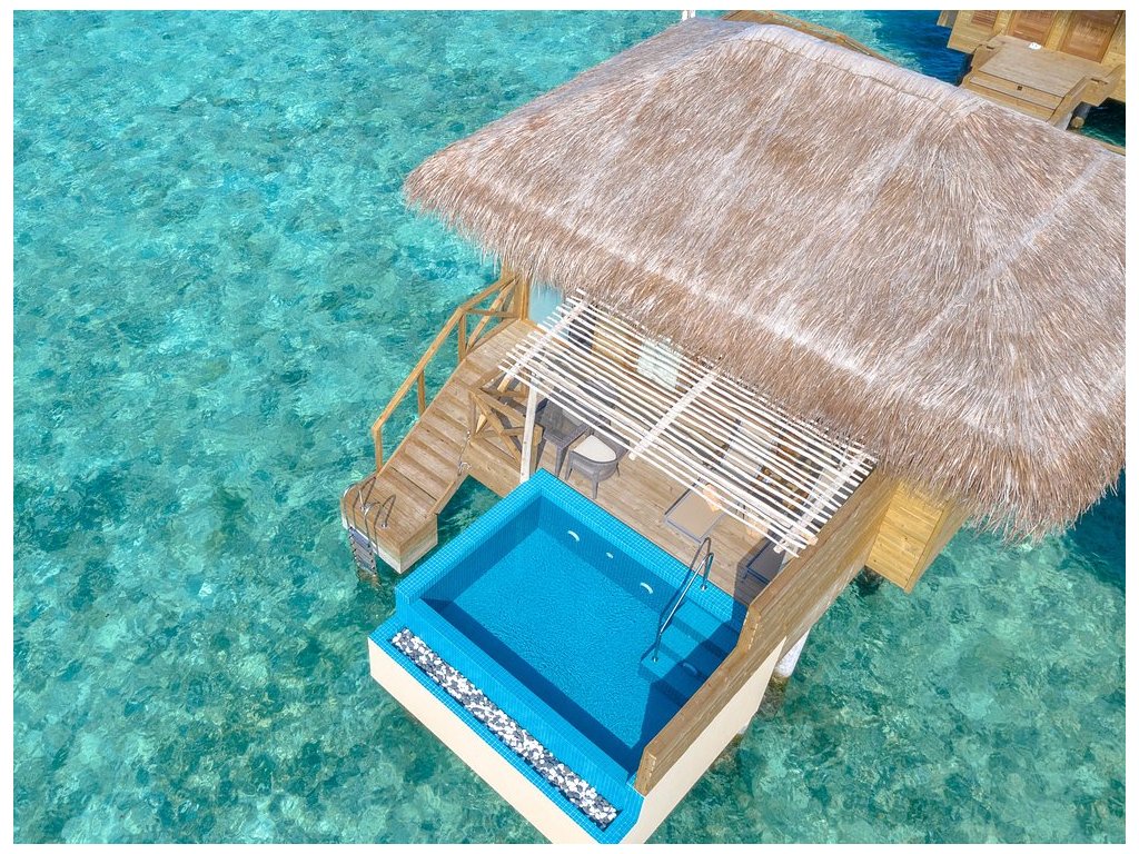Resort vyniká romantickou atmosférou, velmi přátelským a osobním servisem a skvělou gastronomií. Oceňujeme unikátní podmořskou restauraci H2O, výběr designových vil s možností privátních bazénů a klidnou lokalitu. Ideální volba pro páry, které chtějí zažít relax, soukromí a výjimečné zážitky. Menším minusem může být menší rozloha ostrova (na druhou stranu menší ostrov, větší romantika), omezený house reef a nutnost cesty hydroplánem. Za nás vynikající resort zaměřený na romantiku a páry se skvělým poměrem cena/výkon.